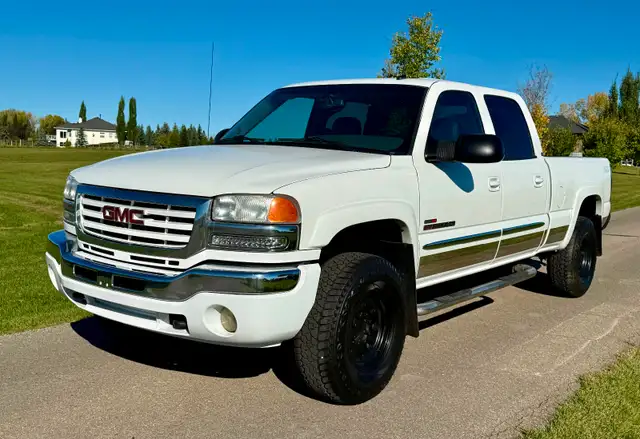 **SOLD**SOLD** Up for sale is a 2003 GMC Sierra 2500HD duramax diesel with the Allison transmission. This is a very sought after truck and they are getting very hard to come by especially in good shape. The truck is in great condition in and out. Has the regular wear and tear of what you would expect from an older truck but overall it’s great. Interior also very clean with no stains or funny smells. Drives and starts great, lots of power. No blow by, injector balance rates are perfect, Only 2 previous owners, local Alberta truck. Shows great pride in ownership and will not disappoint!! Options/features: 252,354 KM 6.5Ft Box Crew cab 6.6l v8 duramax engine (LB7) Allison Automatic transmission with tow option Leather interior Power seats Heated front seats Keyless entry Cruise control 4x4 electronic Automatic climate control Power windows/locks/mirrors/seats BOSE factory upgraded speaker system with subwoofer Extendable factory Tow mirrors Leather Steering wheel with controls And much more... Recent service: Brand new upper and lower ball joints Brand new inner and outer tie rod ends Brand new windshield Brand new All Season Lt heavy duty tires Extras: Fass dual filter fuel pump After market black alloy wheels LED tail lights LED front marker lights Painted grille Mud flaps Running boards Chrome rocker moulding trim **We can arrange transport all Accross Canada!!** Stock #8421 ***We Do NOT offer any financing*** Vehicle is fully inspected and certified, report will be given to buyer. **Viewing by appointment only** For viewing or questions please call Glen @ 403-870-6651 Also check us out on Facebook @ Foothills Motors LTD. Website: Foothillsmotors.ca Foothills Motors LTD. We are fully licensed and insured, all vehicles come with a mechanical report free of charge. NO documentation fees NO administration fees Only add the GST Open for viewing 7 days a week !!!